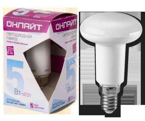 Лампа ОНЛАЙТ диодная R50-5-4К-Е14 /71652/